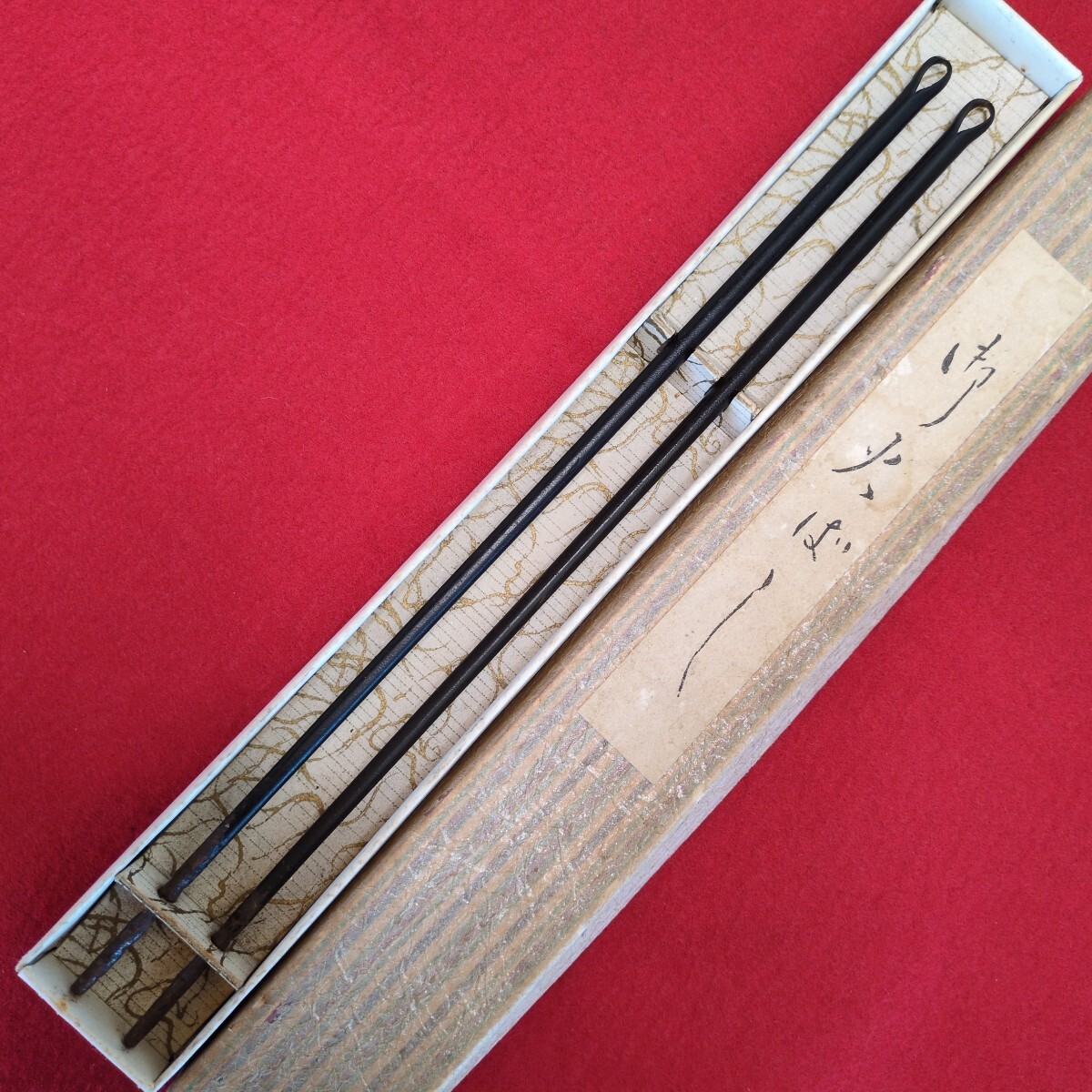 - 2510-04 風炉用 御火ばし (約29cm) 茶道具 火箸 当時物