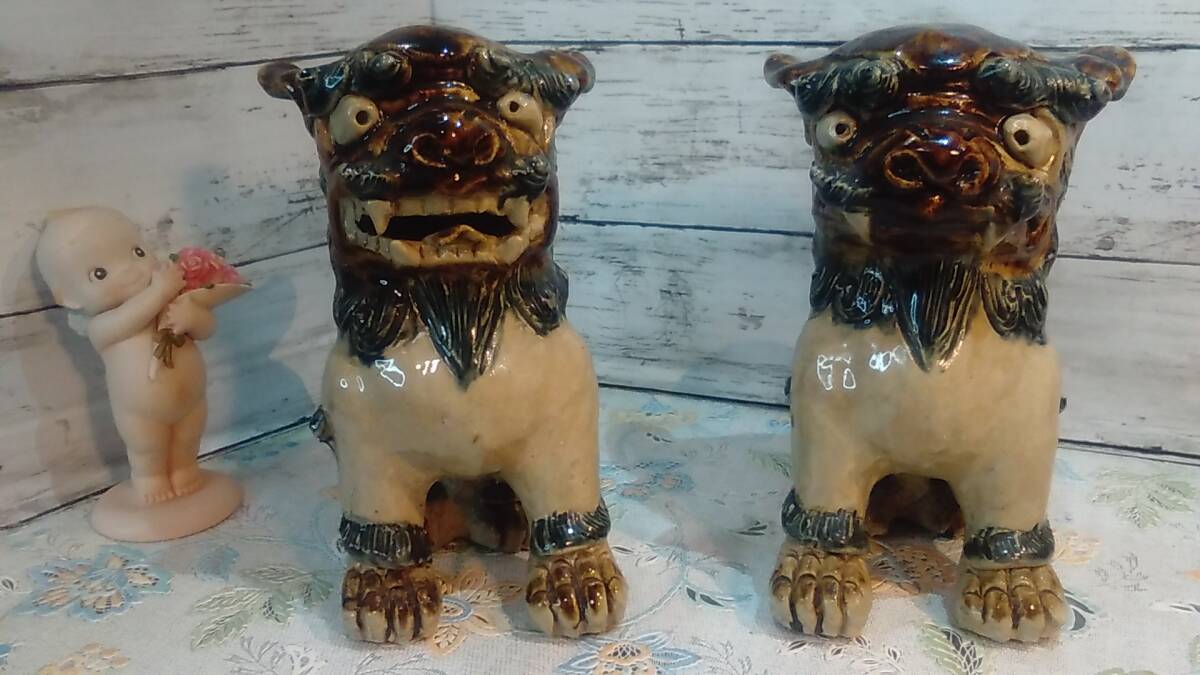 - ■■沖縄シーサー シーサー ペア 高さ約20cm 重量1350g(1体) 招福 開運 縁起物 ■■