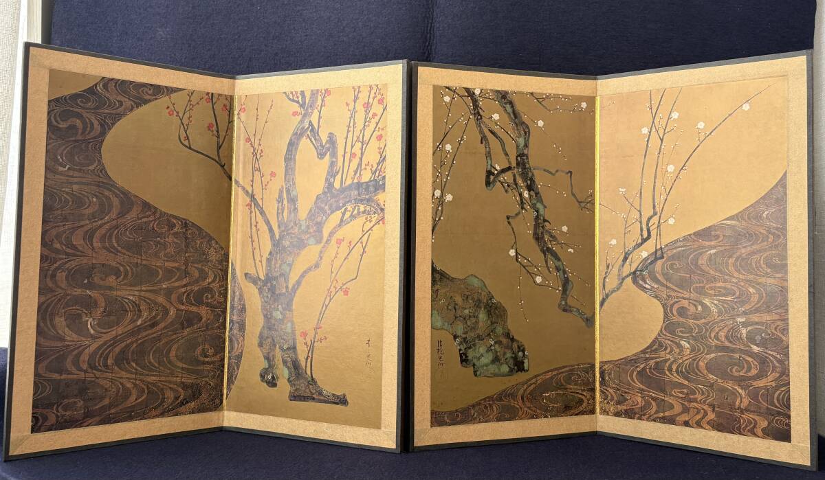 - 複製 「国宝 紅白梅図屏風」 尾形光琳筆 紙本金地着色 化粧箱 解説付 便利堂印刷発行 梅図 梅花 紅白 アンティーク 美品