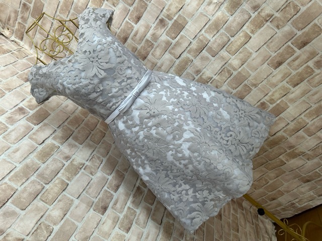 - k25145●ドレスワンピース 衣装 ライトグレー オーガンジー 柄 パーティー L