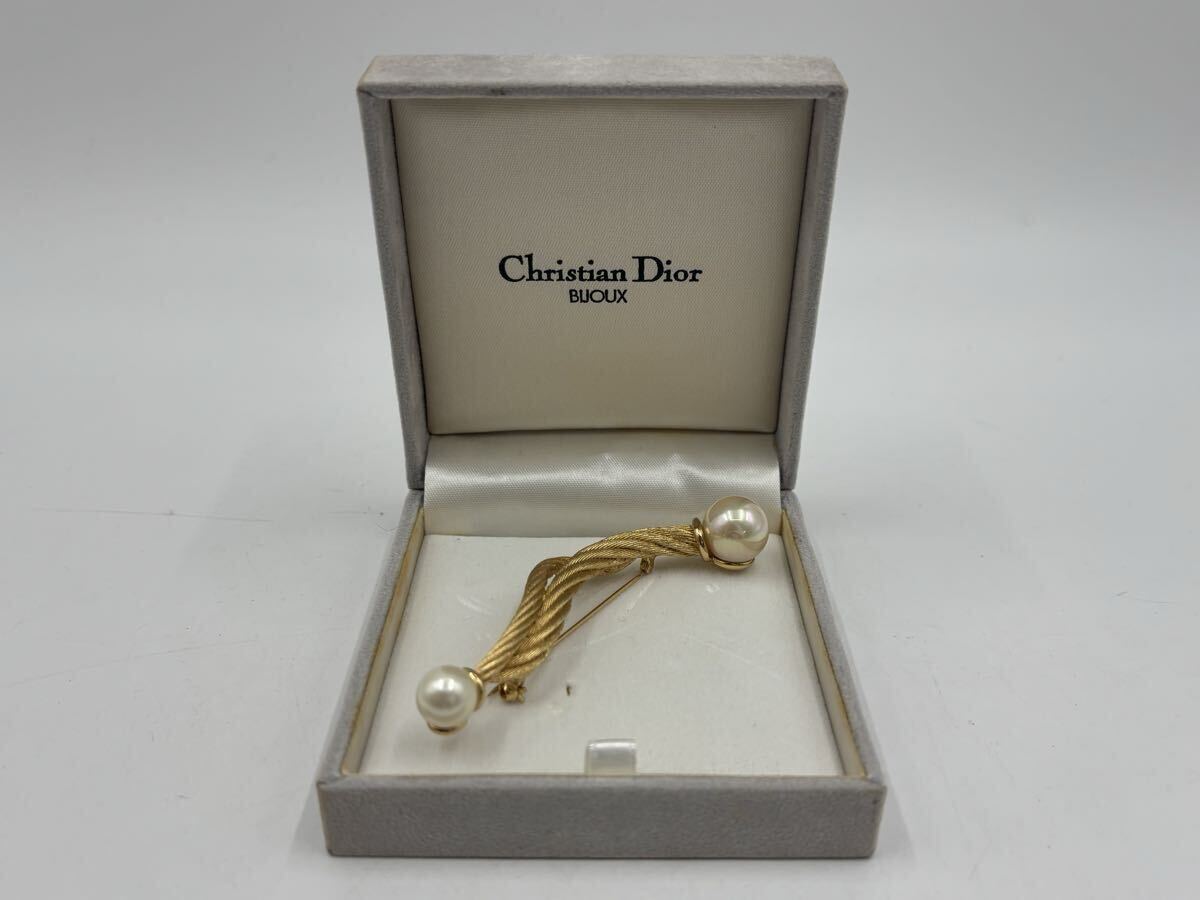- I39682052509 Christian Dior クリスチャンディオール ブローチ パールディテールブローチ ゴールドカラー アクセサリー 箱付 現状品 中古