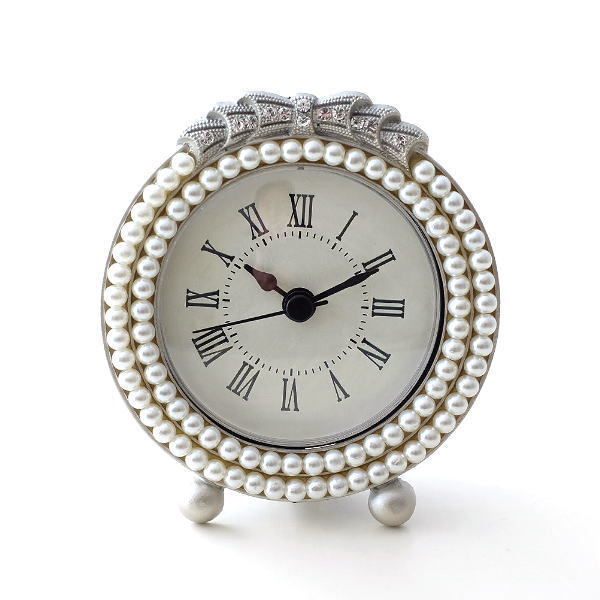 - 置き時計 置時計 おしゃれ アナログ かわいい 可愛い エレガント テーブルクロック パールラウンド 送料無料(一部地域除く) abk8439