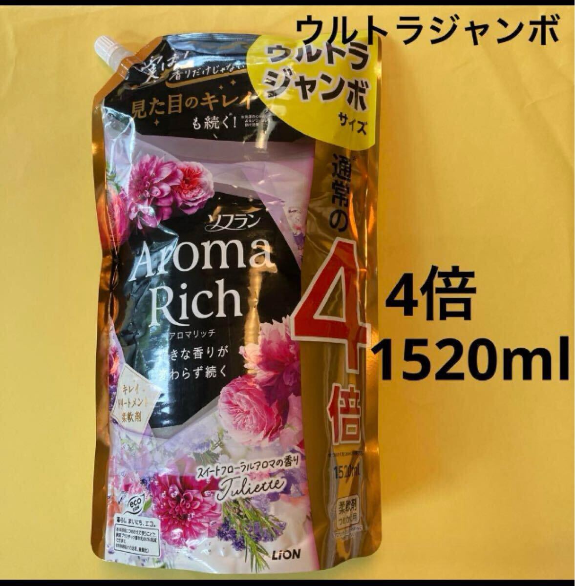- 1520ml ソフランアロマリッチ ウルトラジャンボサイズ スイートフローラルアロマの香りJulietteジュリエット柔軟剤 詰替用 4倍 ライオン