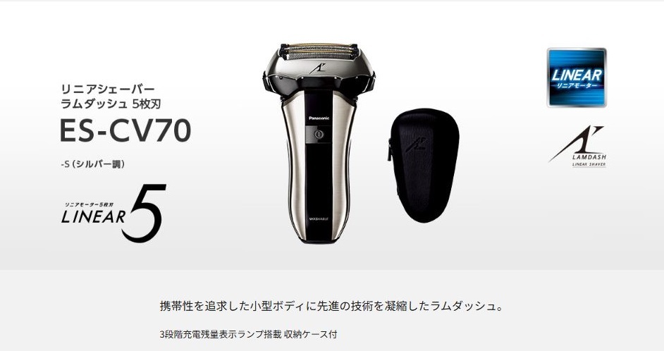 > ◆送料無料◆展示品◆Panasonic パナソニック◆リニアシェーバー 『コンパクトラムダッシュ』 5枚刃◆ES-CV70-S◆即決◆