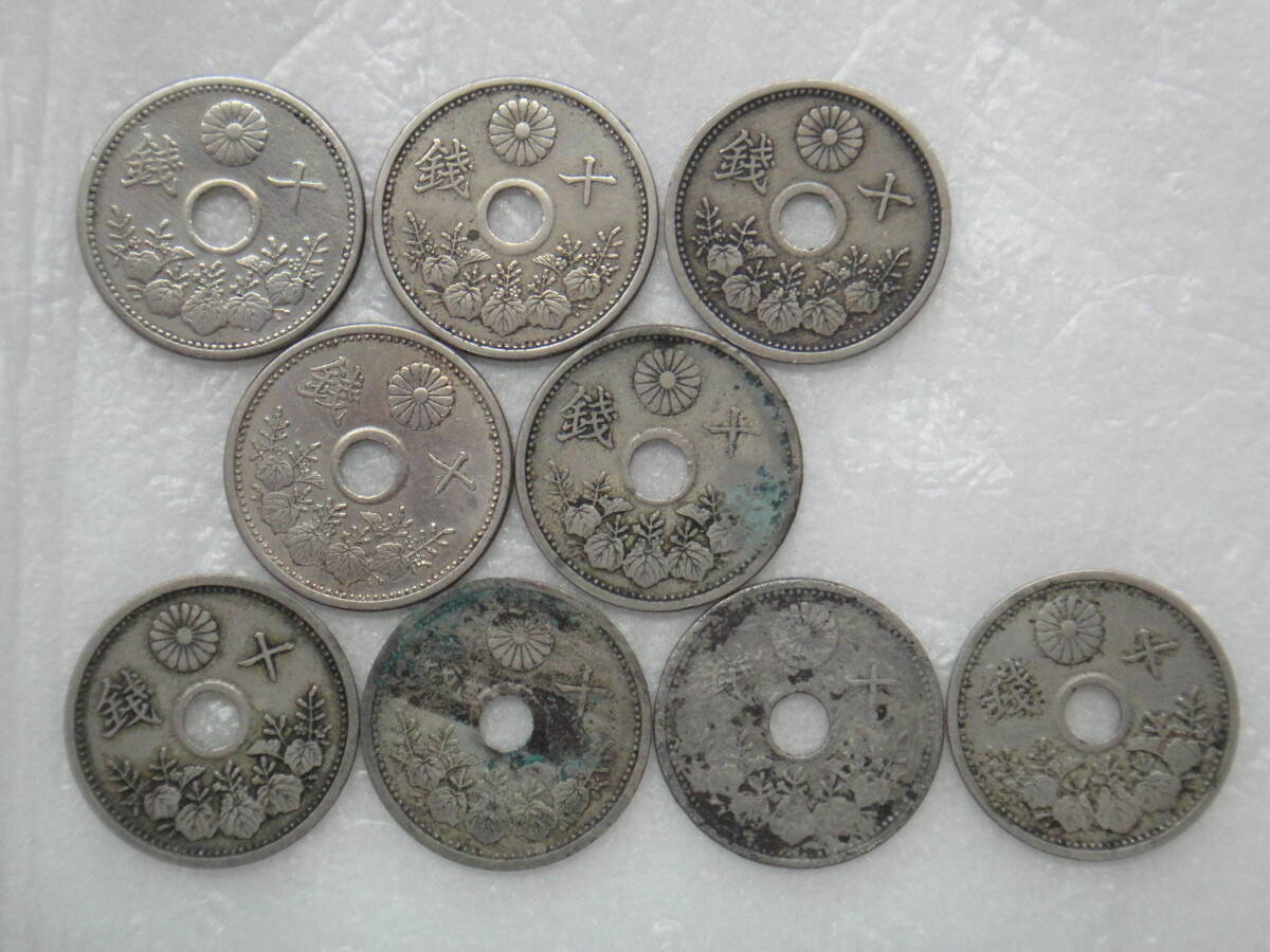 - 【古銭】大正10年・11年・12年・14年×2・15年×4 10銭 計9枚セット