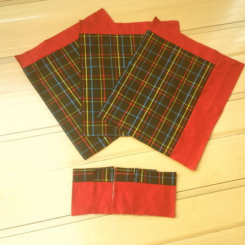 - 【手作り小物】2900円翁格子文ランチョンマット3枚とコースター4枚セット