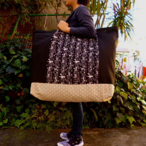 - 入学、入園!3200円落書きネコ(黒)特大布団バッグ 手作り小物