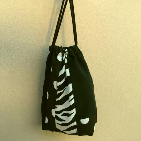 - 【入学、入園!】450円ゼブラとドット(モノクロ)パッチワーク巾着袋 【手作り小物】