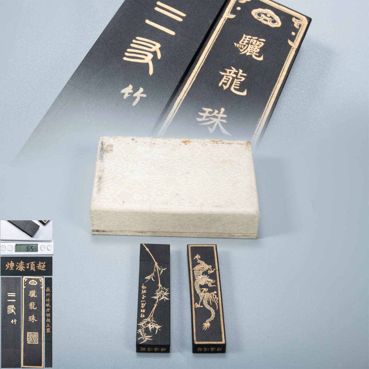 - BR2763-中国墨 超頂漆煙 徽州休城老胡開文製 2点セット 箱付き 唐物