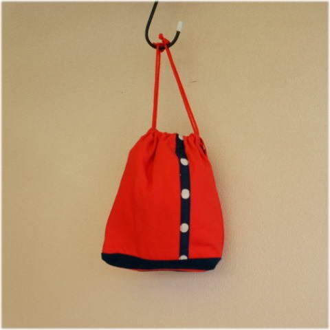 - 【入学、入園!】450円赤と紺ドットパッチワーク巾着袋 【手作り小物】