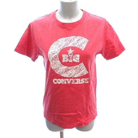 > コンバース CONVERSE カットソー Tシャツ ラウンドネック プリント 半袖 L 赤 レッド /AU レディース