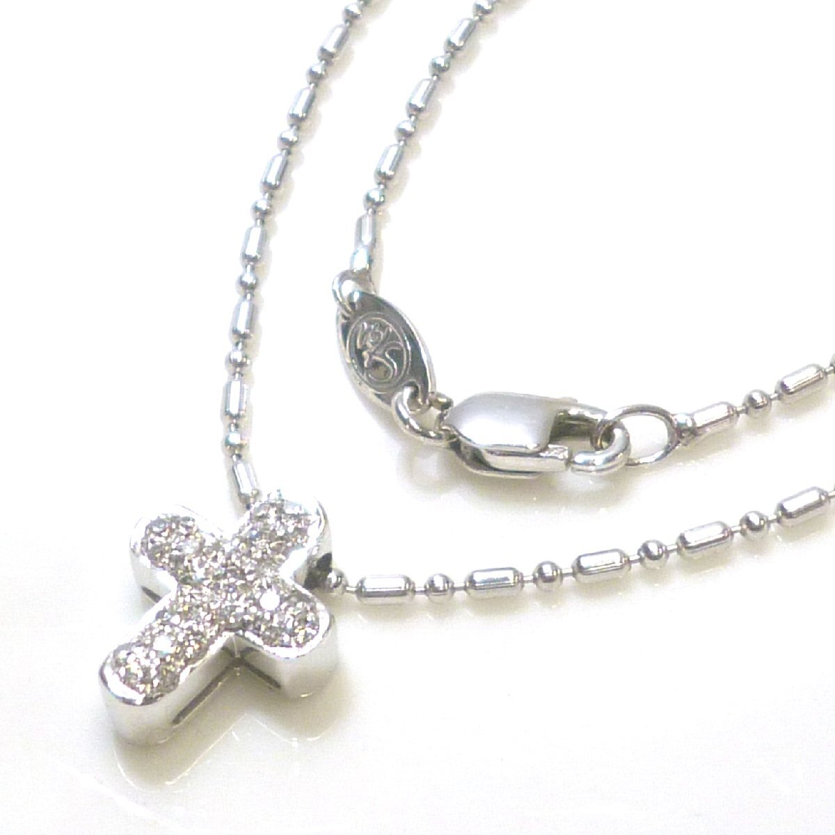 > 【K18WG】 スタージュエリー ダイヤ 0.13ct クロス ネックレス ホワイトゴールド トップ チェーン ギャランティカード付【ネコポスOK】◇J
