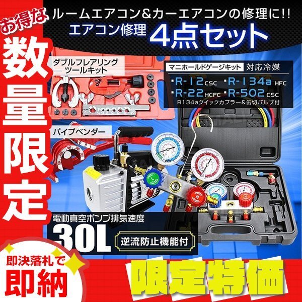 > 【限定セール】エアコンガスチャージ 4点セット 真空ポンプ マニホールドゲージ フレアリングツール チューブベンダー R134a R12 R22 R502
