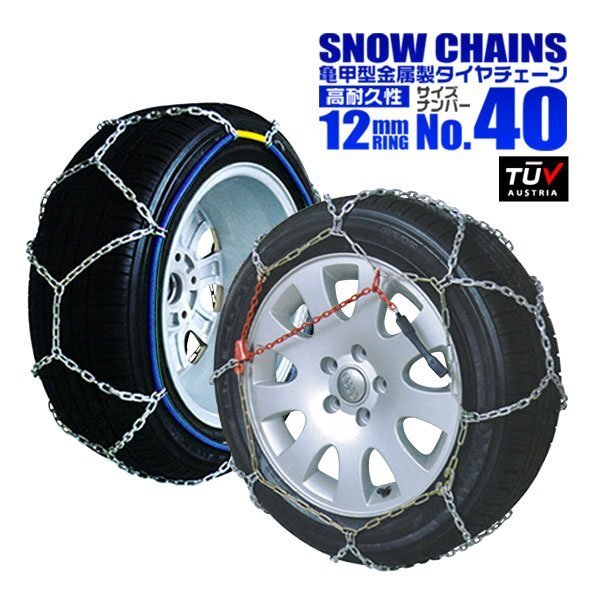 > 金属 タイヤチェーン 12mmリング 簡単取付 165/55R15 175/60R14 他 スノーチェーン 亀甲型 ジャッキ不要 1セット(タイヤ2本分)