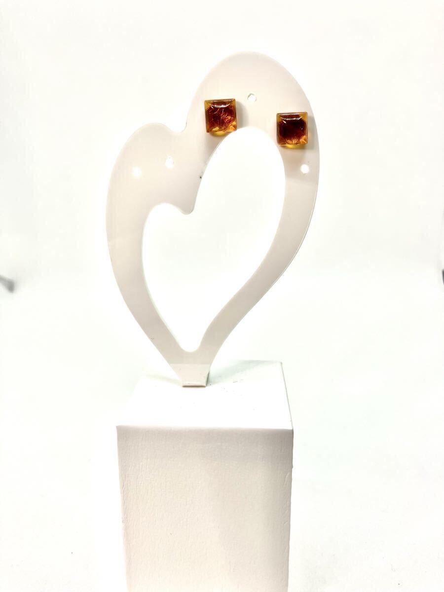 - 【新品】リトアニア産琥珀ピアス/アンバー/コハクこはく/シンプル/スタッドピアス/スクエア型/バルティックアンバー