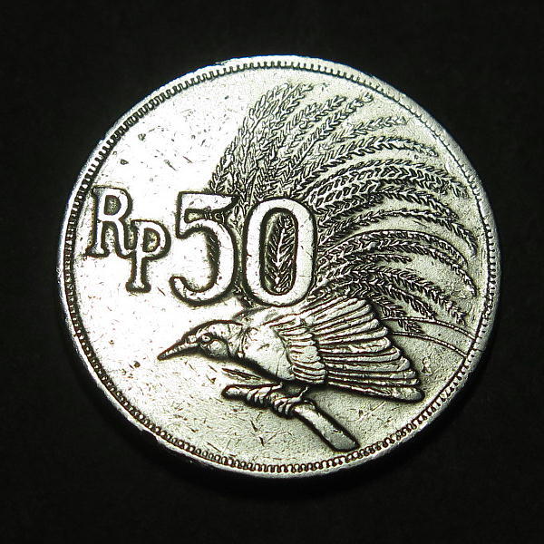 - インドネシア 1971年 昭和46年 50ルピア硬貨 極楽鳥 b0003