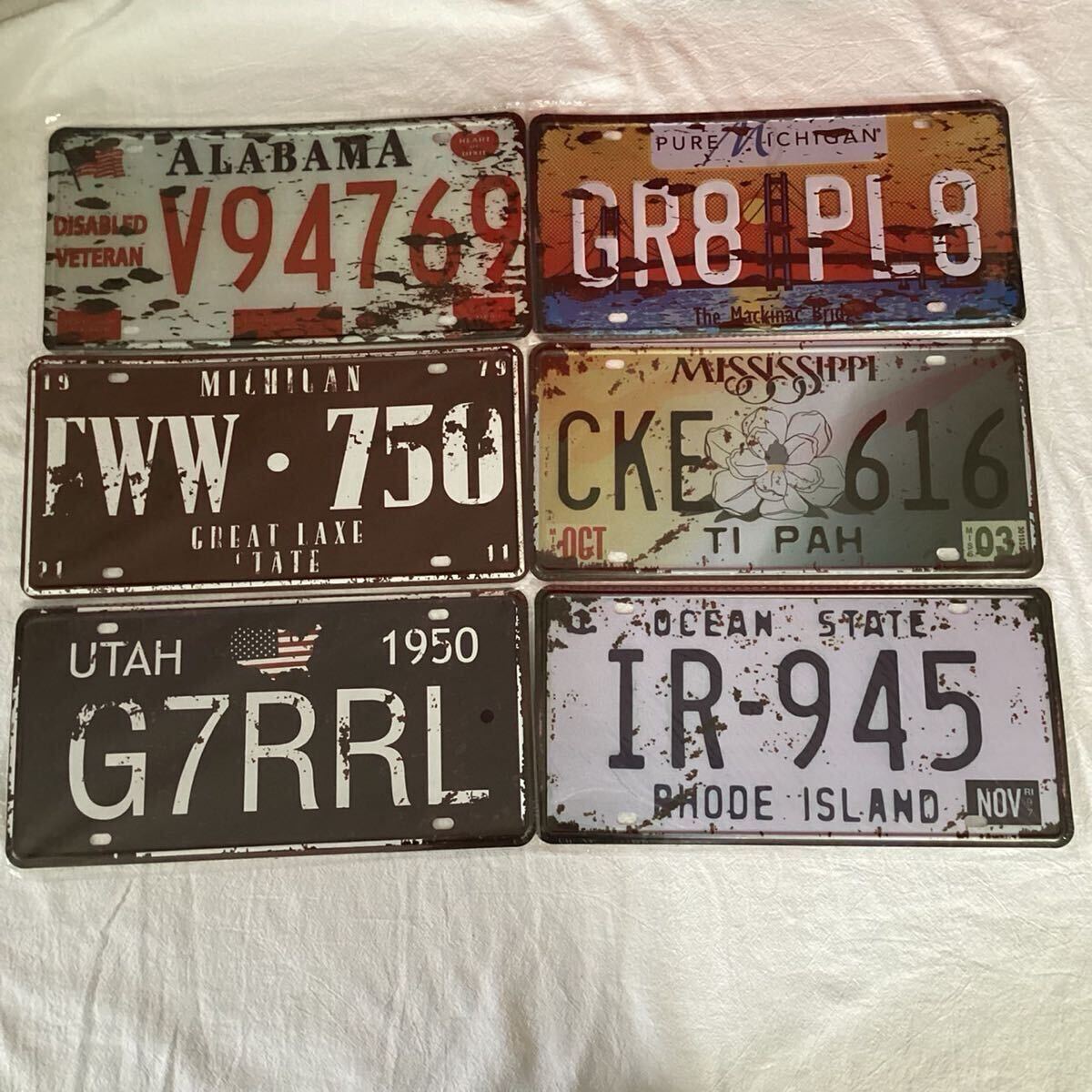 - ヴィンテージ風 アメリカン ブリキ 看板 ナンバープレート 6枚セット
