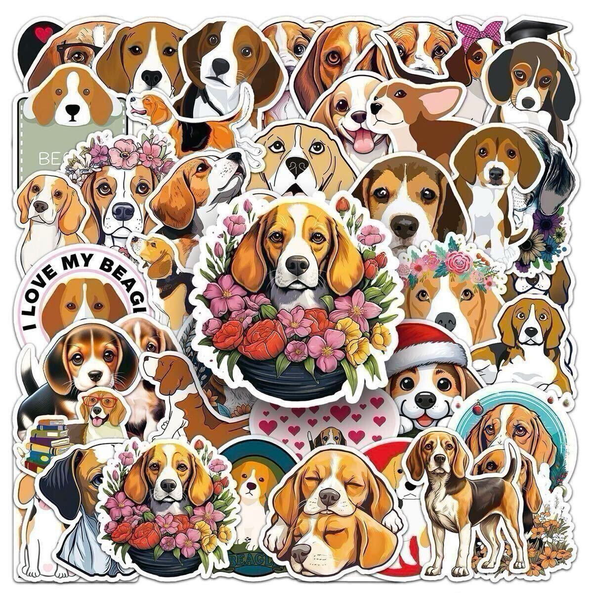 - シール ステッカー 50枚 犬 いぬ イヌ ビーグル ワンちゃん ペット 愛犬 ノートパソコン メモ帳 スケボー