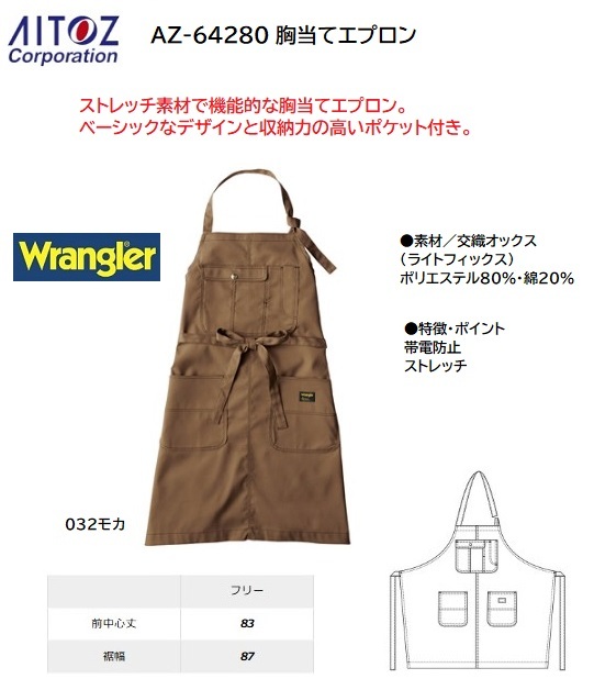 > [ゆうパック発送/3枚まで]◆Wrangler 胸当てエプロン AZ-64280【032モカ・フリーサイズ】1枚5500円の品、即決1000円