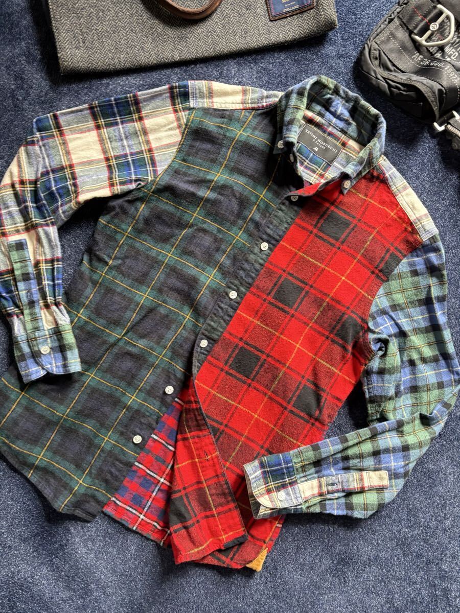 > 超美品 定価1.3万円 日本製 TAISHI NOBUKUNI A TAILOR タイシノブクニ 高品質フランネル素材 切替チェック ボタンダウン 長袖シャツ sizeM
