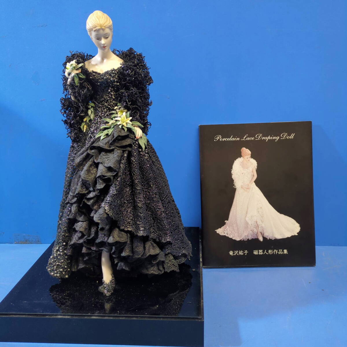 > kankando 竜沢祐子 磁器人形『Calling』高さ34×幅20×奥行き20cm アクリルケース入り 作品集付《真作》レースドール作家