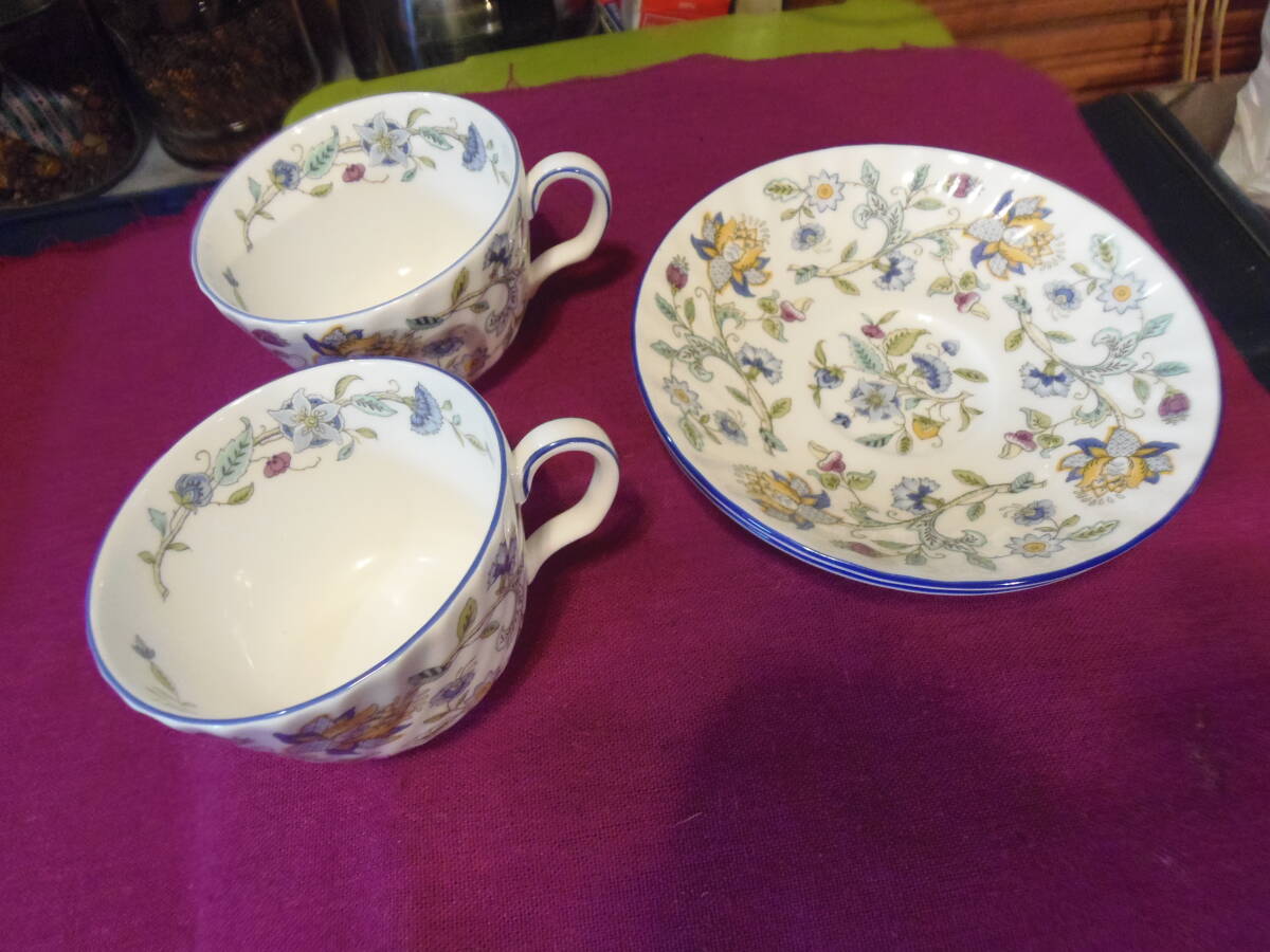 - ティーカップセット 2脚セット FINE BONE CHINA MADE IN ENGLAND 1993 MINTON 上物です。184.