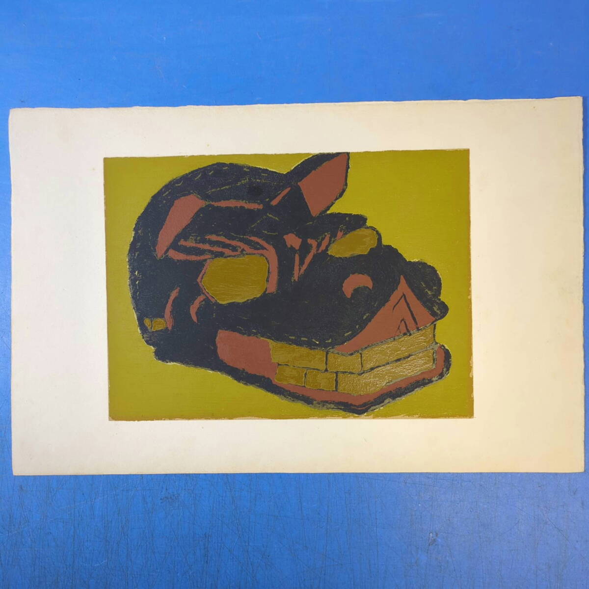 - kankando『熊谷守一 ミクストメディア版画 獅子頭』絵具が盛り上がっています!分かる方お願いします!《真作》