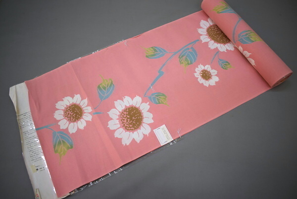 - A01-13【凛々】即決 新古品(夏すがた)本染 ゆかた反物 ピンク ひまわり 未仕立て品