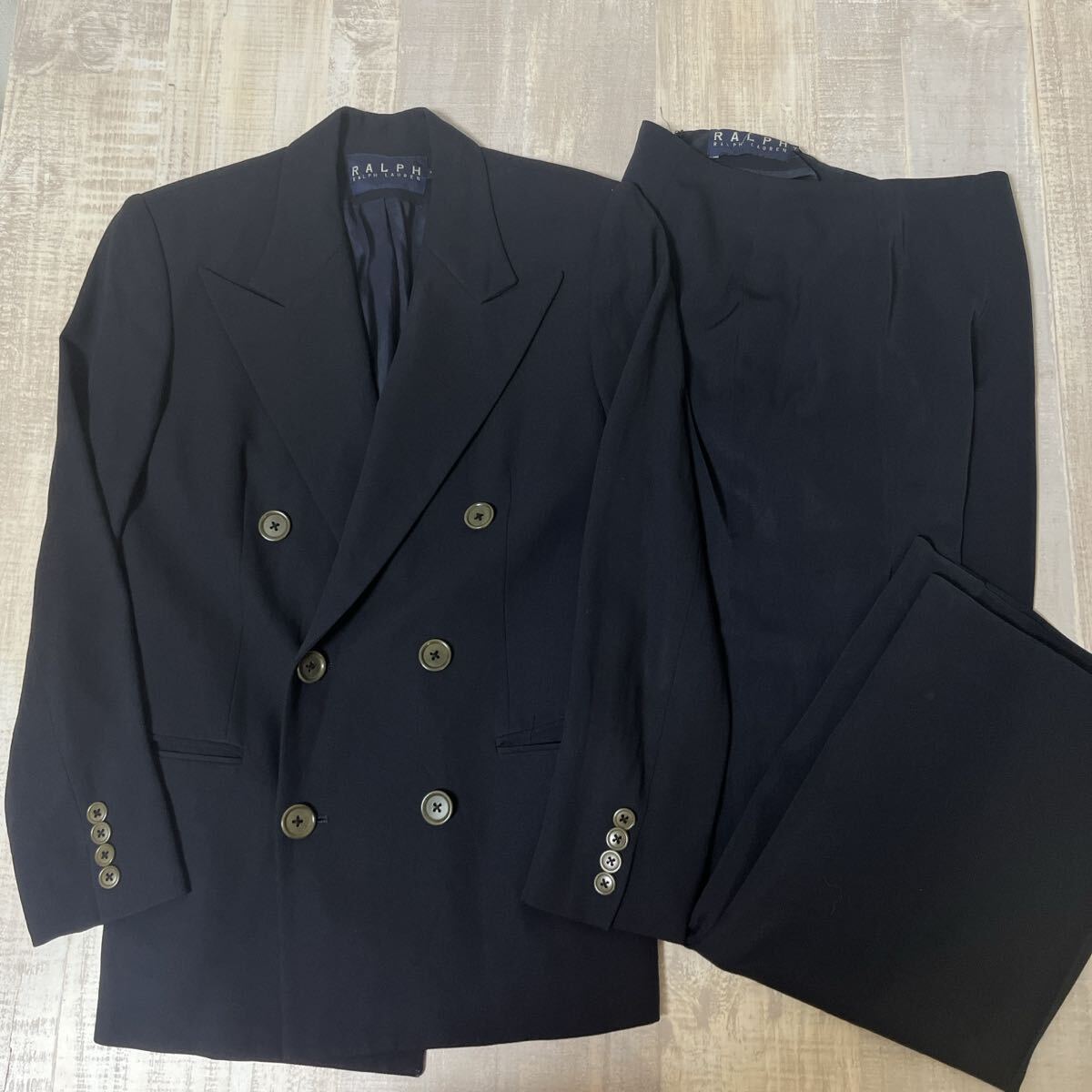 - 【日本製テロテロ生地】RALPH LAUREN パンツスーツ セットアップ ラルフローレン テーラードジャケット ダブルブレスト POLO ポロ ブレザー