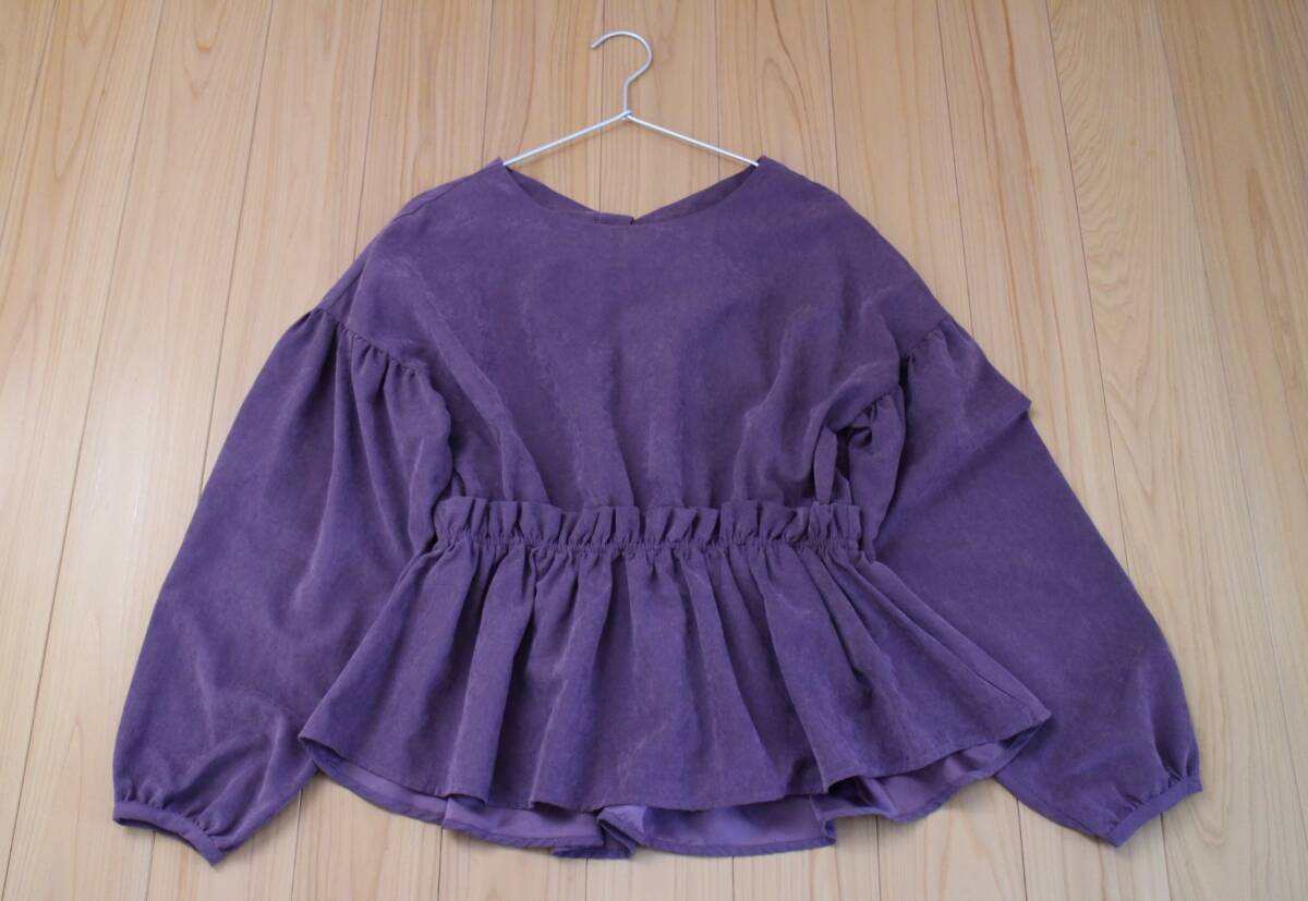 - 【賢くおしゃれ♪】今旬人気*RETRO GIRL レトロガール*大人可愛い秋色ベルベット後ろリボンフリルシャーリングトップスM ワイン デート旅行