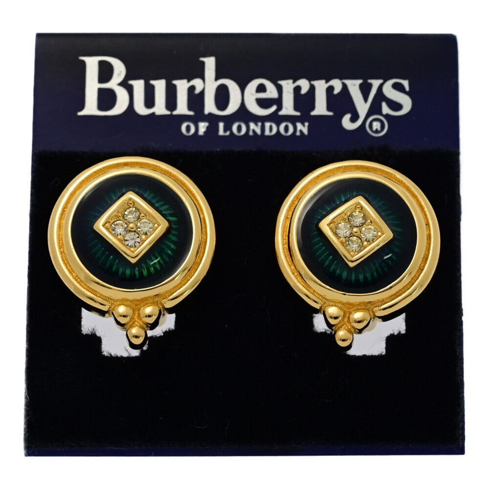 - burberry’s バーバリー ラインストーン イヤリング/合金/メッキ-13.0g/ゴールド×グリーン/プレゼント/記念日■592681