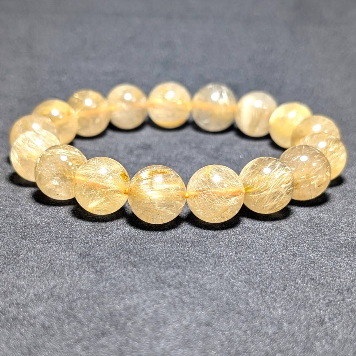 - 【綺麗な金糸が内包する】ゴールド ルチルクォーツ ブレスレット 12ミリ 最強金運パワー全開 運気を高める 開運 ギフト 贈り物 プレゼント