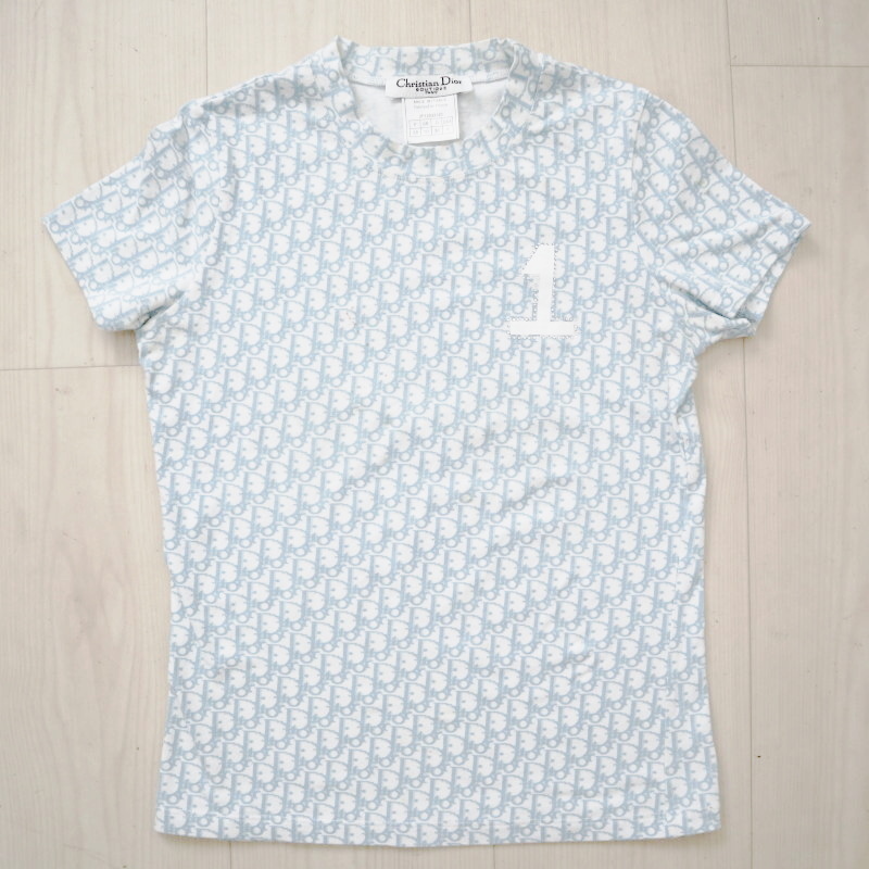> Christian Dior クリスチャンディオール トロッター No1 コットン/ライクラ 半袖 カットソー トップス F38 ライトブルー/ホワイト K10-k023
