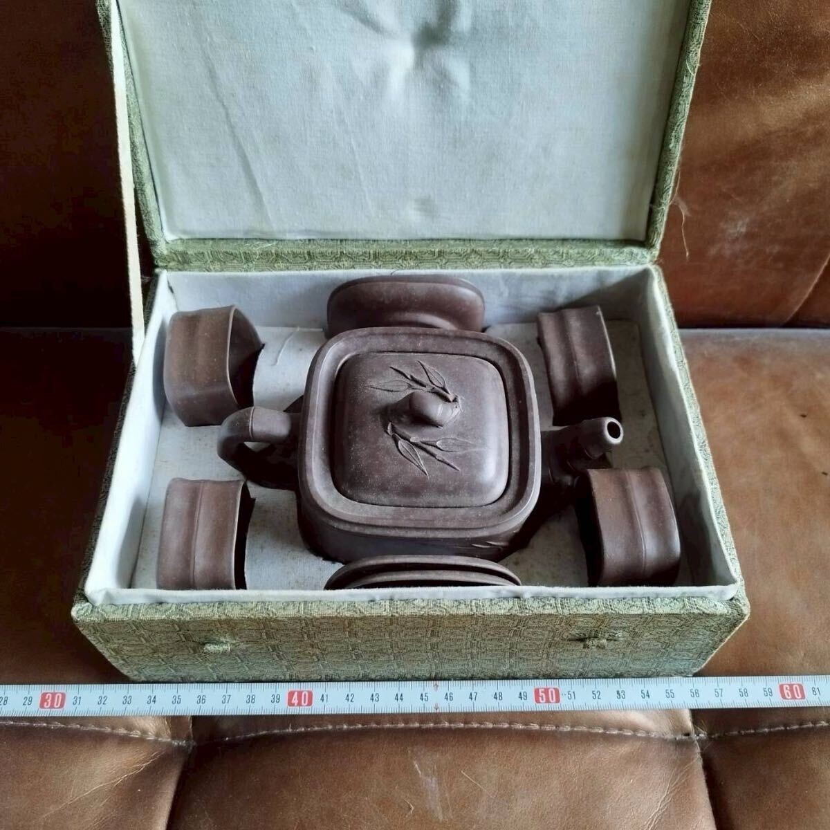 - 西A01 ◆未使用◆中国 宜興 馬雲悌 紫砂彫 煎茶道具 紫砂 茶器 茶具 セット 道具 古賞物 中国 古美術 陶芸 伝統工芸 ケース付き 中国茶器