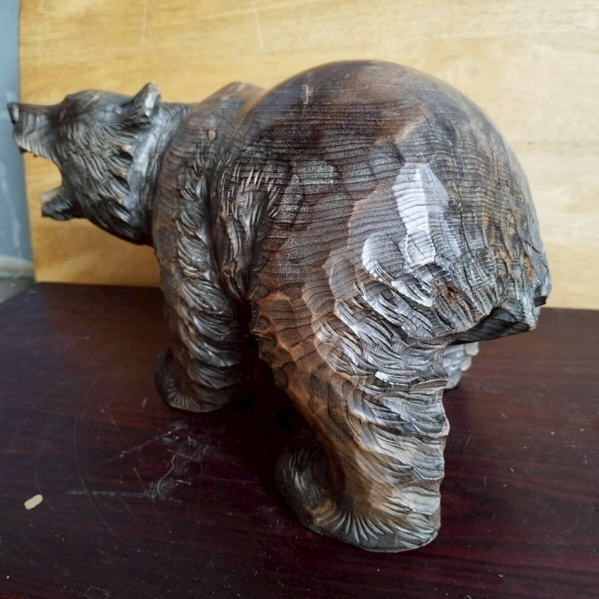 - 西A01 吠える 熊 レア 北海道 八雲 民芸 / 木彫 熊 置物 / アイヌ 彫刻 時代物 骨董品 古美術品 木彫り熊 彫刻