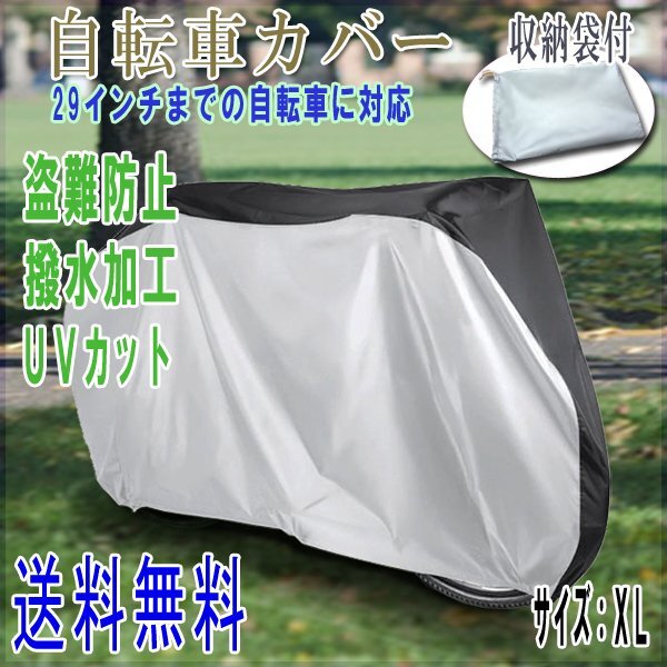 - 自転車カバー 29インチ 撥水 シルバー×ブラック / UVカット 撥水 梅雨 対策 紫外線カット 防水風飛び防止盗難防止 雨除け送料無料