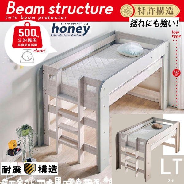 - ロフトベッド ハニー honey 高132cm BASIC 耐荷重500㎏ ベゼル耐震構造 特許取得 業務用 会社仮眠 送料無料 WH-LT ラテ