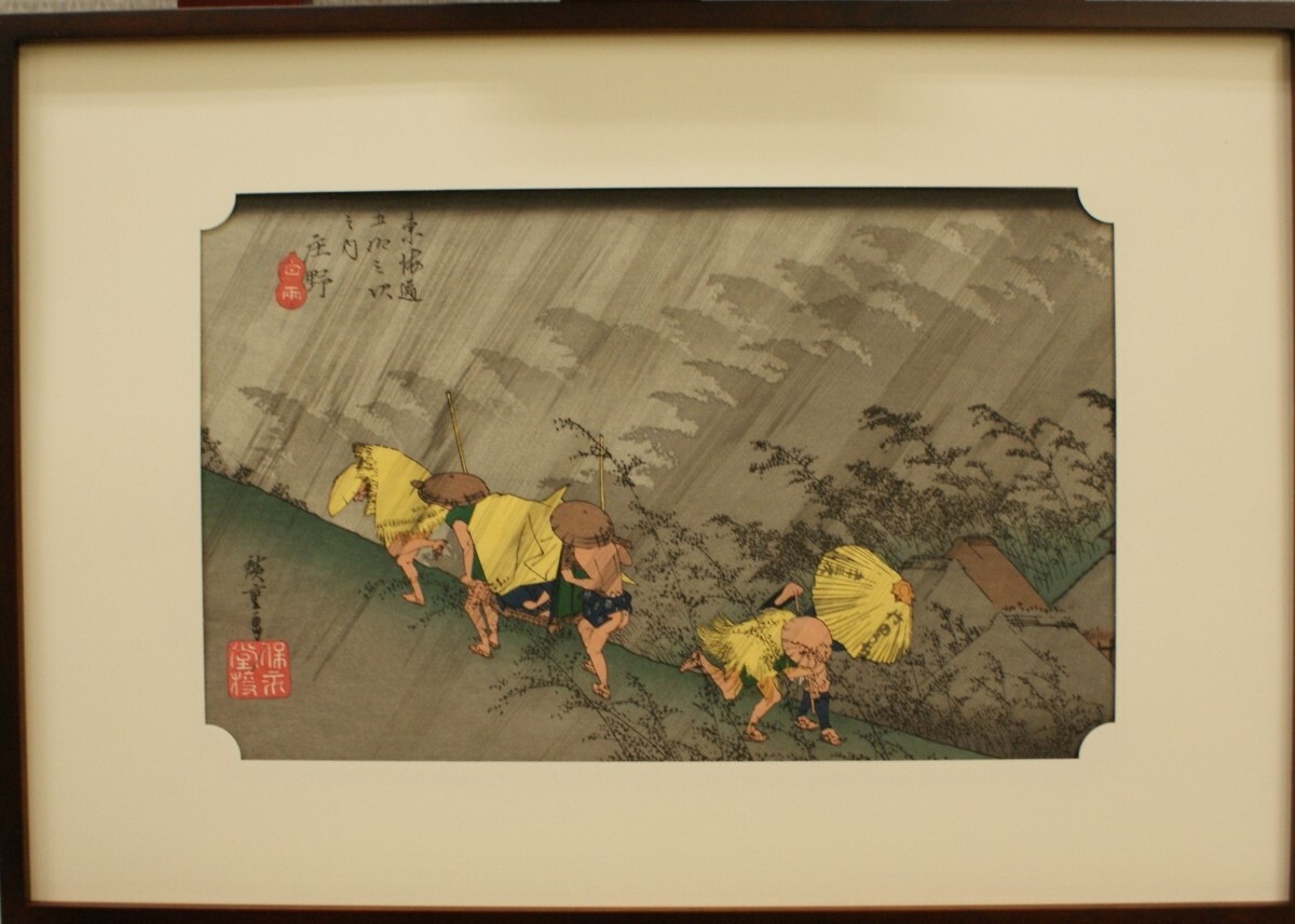 - ・作者:歌川広重・画題:東海道五十三次(庄野白雨)・技法:木版画(複製) (A1-HIO-R4-6-17-15.8)