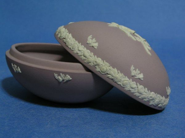 - ◎ウェッジウッド ライラック(薄紫色)ジャスパー 大型卵形蓋物「天使」◎o20難あり