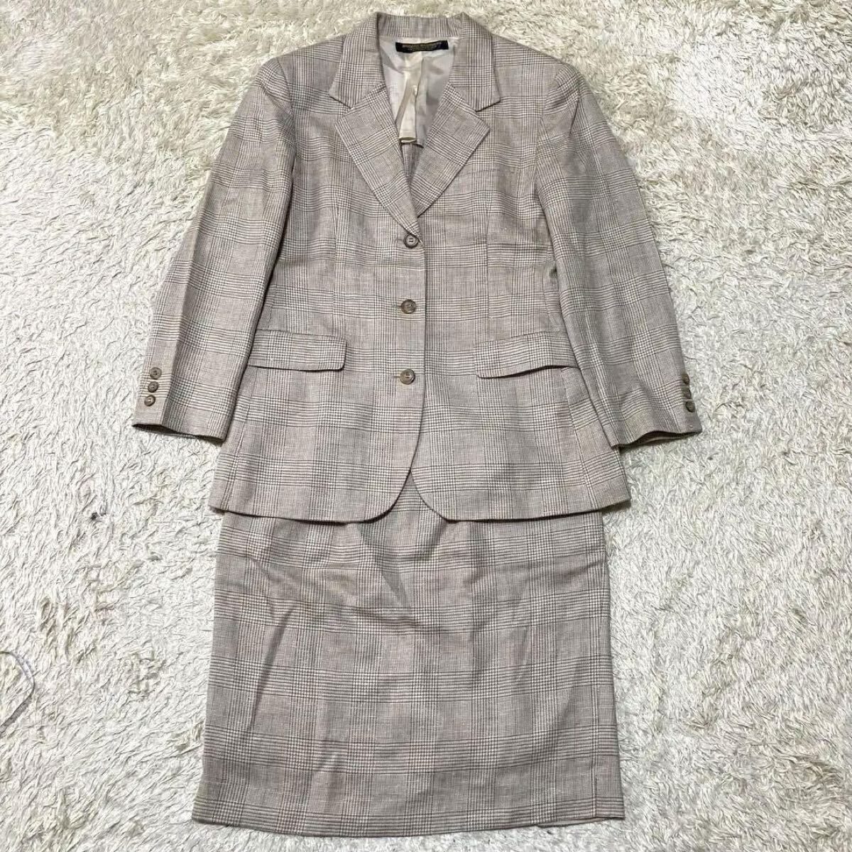 > ブルックスブラザーズ BROOKS BROTHERS スーツ セットアップ 2ピース 2P ジャケット スカート チェック 格子柄 シルク リネン 絹 麻