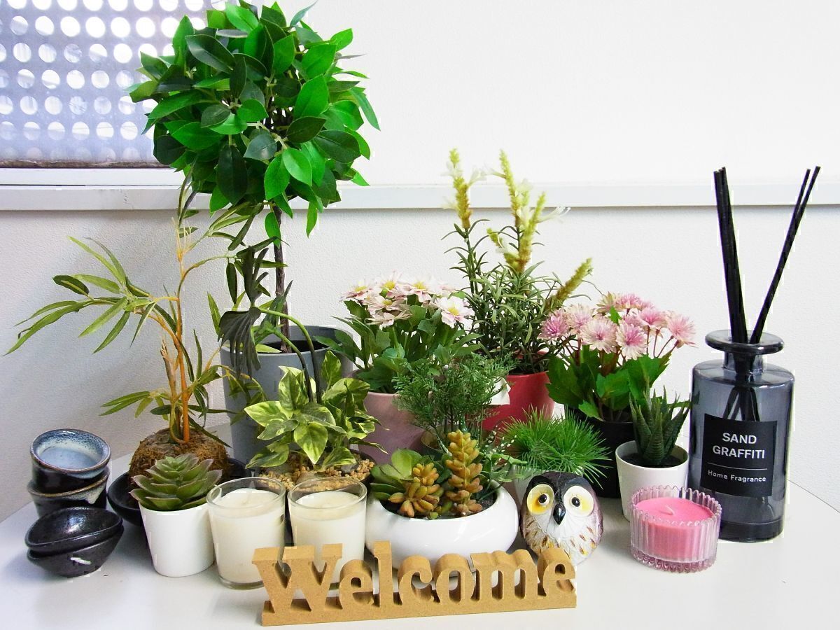 - ★中古★人工観葉植物&多肉植物 インテリアセット★アロマキャンドル3個★フクロウ置物★ドライフラワーボール★アロマディフューザー★