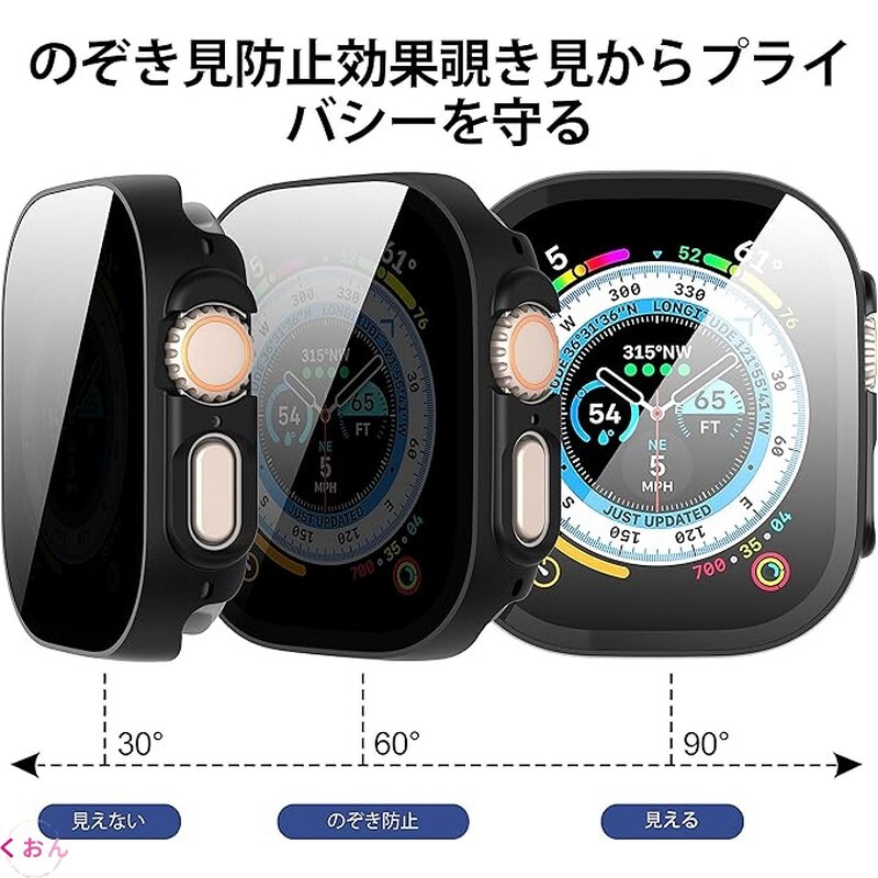 - ブラック 3枚 覗き見防止 PC+ 強化ガラス 一体型 装着簡単 アップル ウォッチ Apple Watch Ultra 3 / 2 / 1 耐衝撃 全面保護 ケース カバー