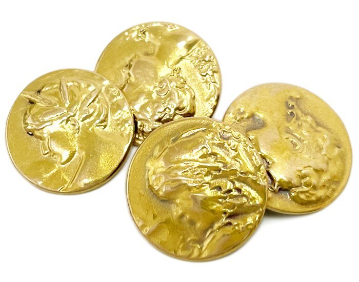 - 14金 カフリンクス カフス ボタン 1セット K14 9.3g ゴールド リバーシブル 両面 両腕 横顔 エンボス ラウンド ヴィンテージ アンティーク