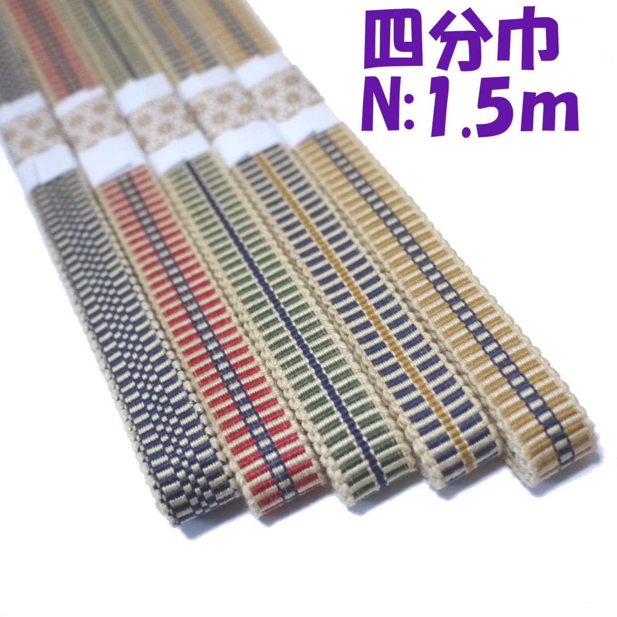 - 匿名発送★04-N-1.5)四分紐 1.5m5本セット 国内産木綿真田紐 綿100% 四分幅 ベージュ紺緑赤からし色 Samurai ribbon(Sanadahimo)