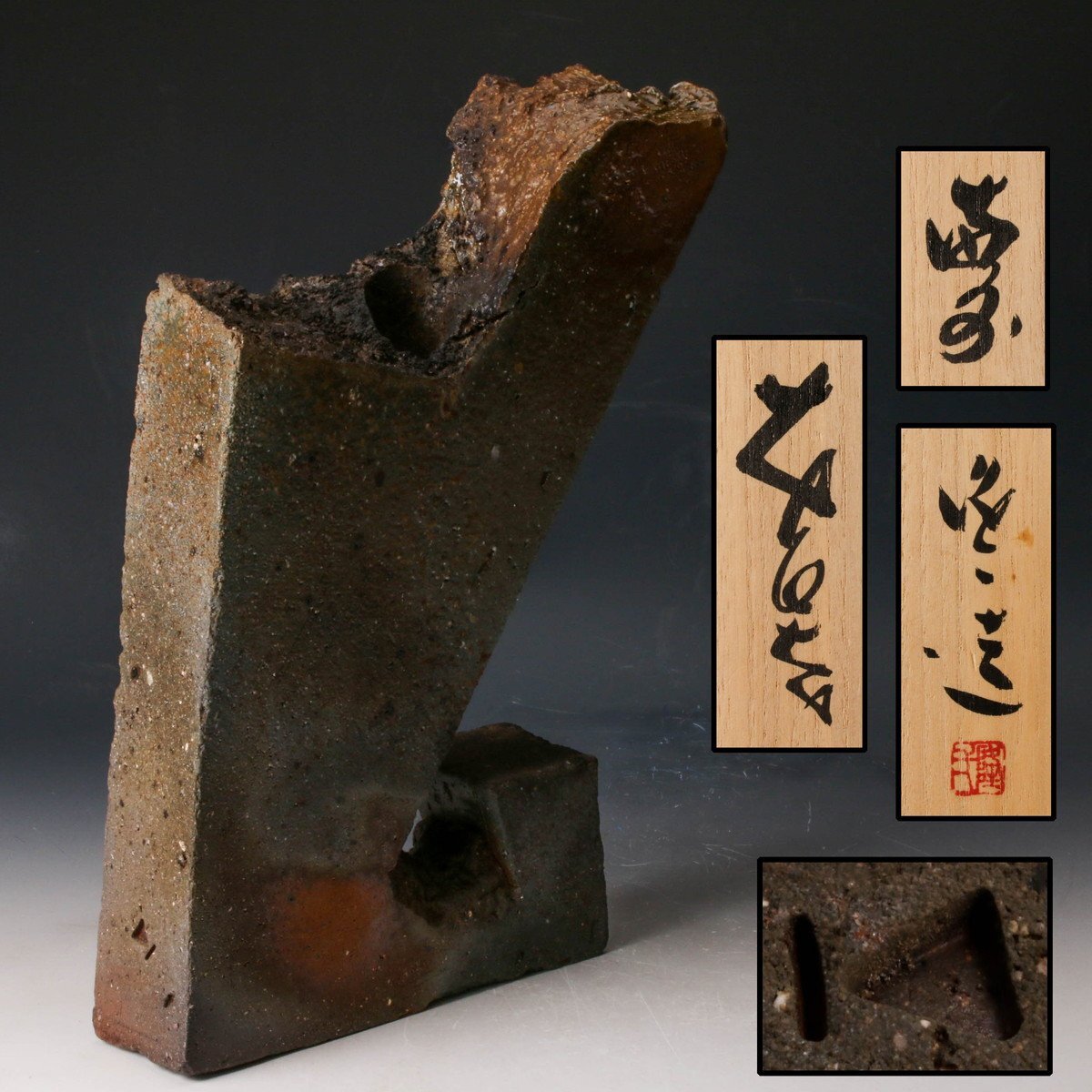 【佳香】隠崎隆一 備前花器 高さ31cm 共箱 本物保証