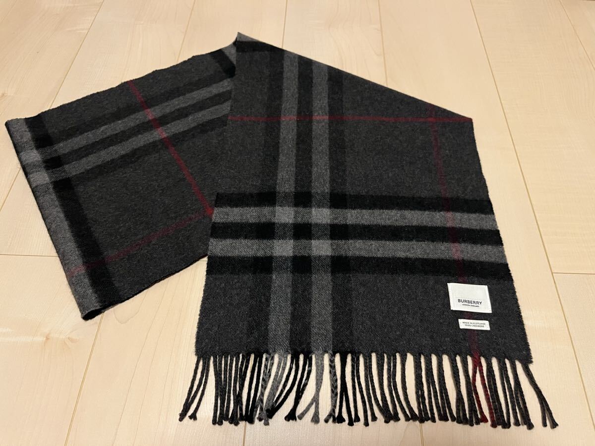 - BURBERRY バーバリー マフラー カシミア100% チャコール 送料無料