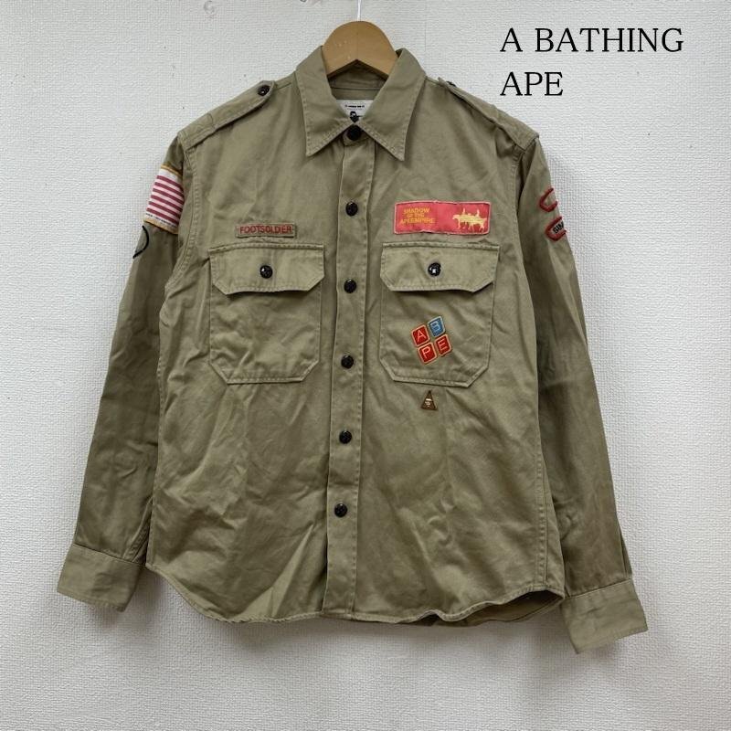 > アベイシングエイプ BAPE 長袖 ボーイスカウト シャツ ロゴ 刺繍 パッチ ワッペン M