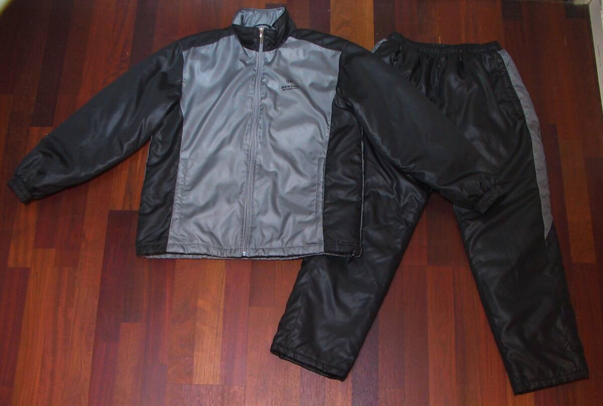 > DUNLOP MOTORSPORT ダンロップ モータースポーツ ウィンドブレーカー 上下 Mサイズ 中綿入り 秋冬 ジャンパーxパンツ グレーx黒 美品