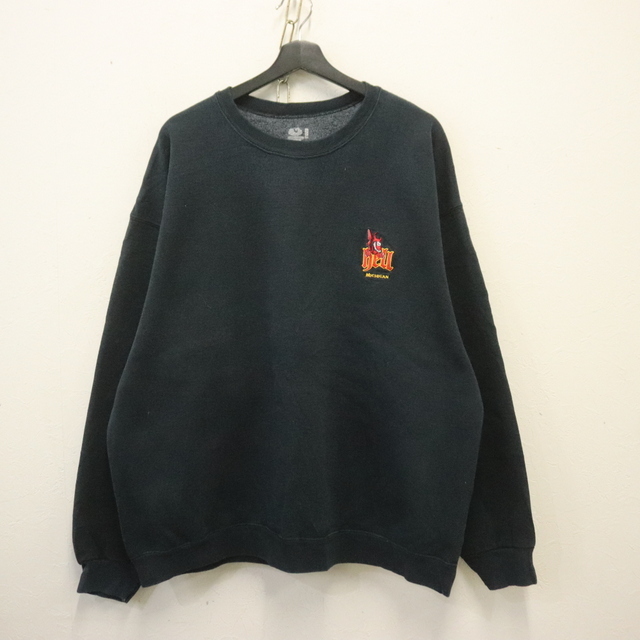 > F809 2000年代製 フルーツオブザルーム 長袖スウェット■00s 表記2XLサイズ 黒 ブラック トレーナー 刺繍 ミシガン hell アメカジ