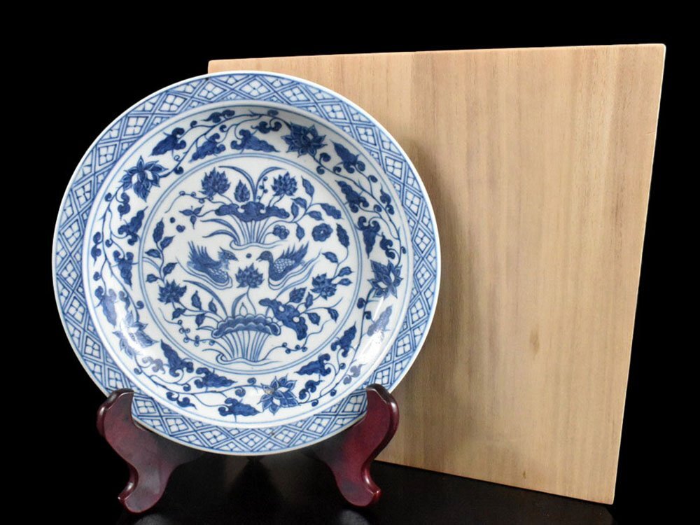 > 【雲】某コレクター買取品 中国古玩 唐物 染付花鳥唐草文皿 直径27.5cm 箱付 古美術品(飾皿)BJ1796 UTokju